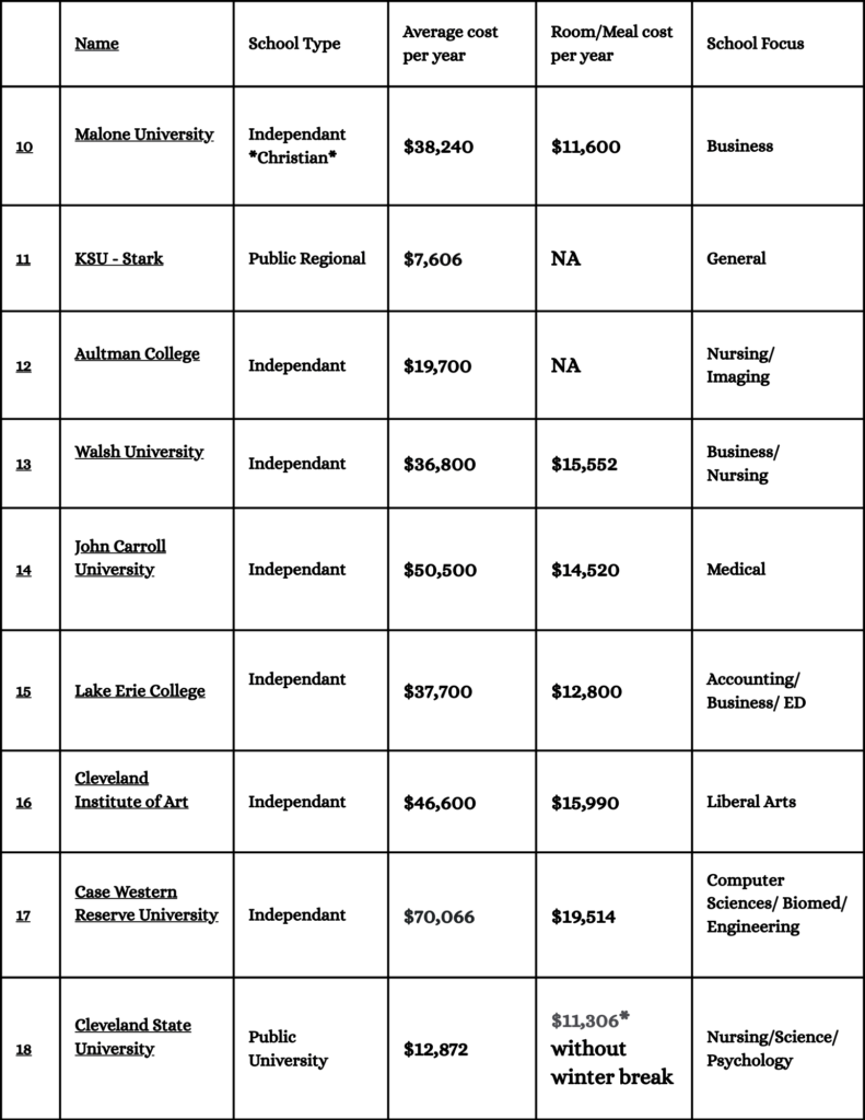 Here is an estimated breakdown for each schools 2026 cost per year – you can usually find these numbers on the chosen institutions website under “Cost at a Glance”