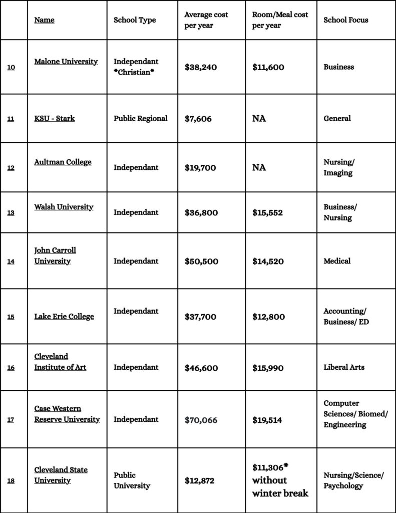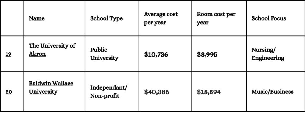 Here is an estimated breakdown for each schools 2026 cost per year – you can usually find these numbers on the chosen institutions website under “Cost at a Glance”