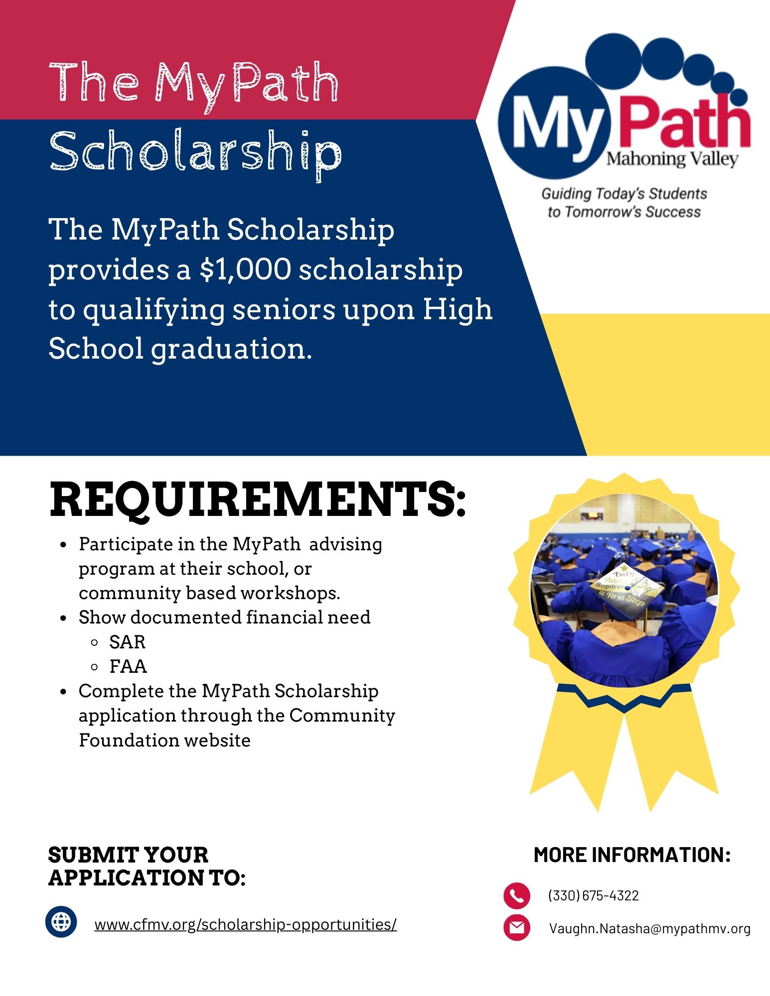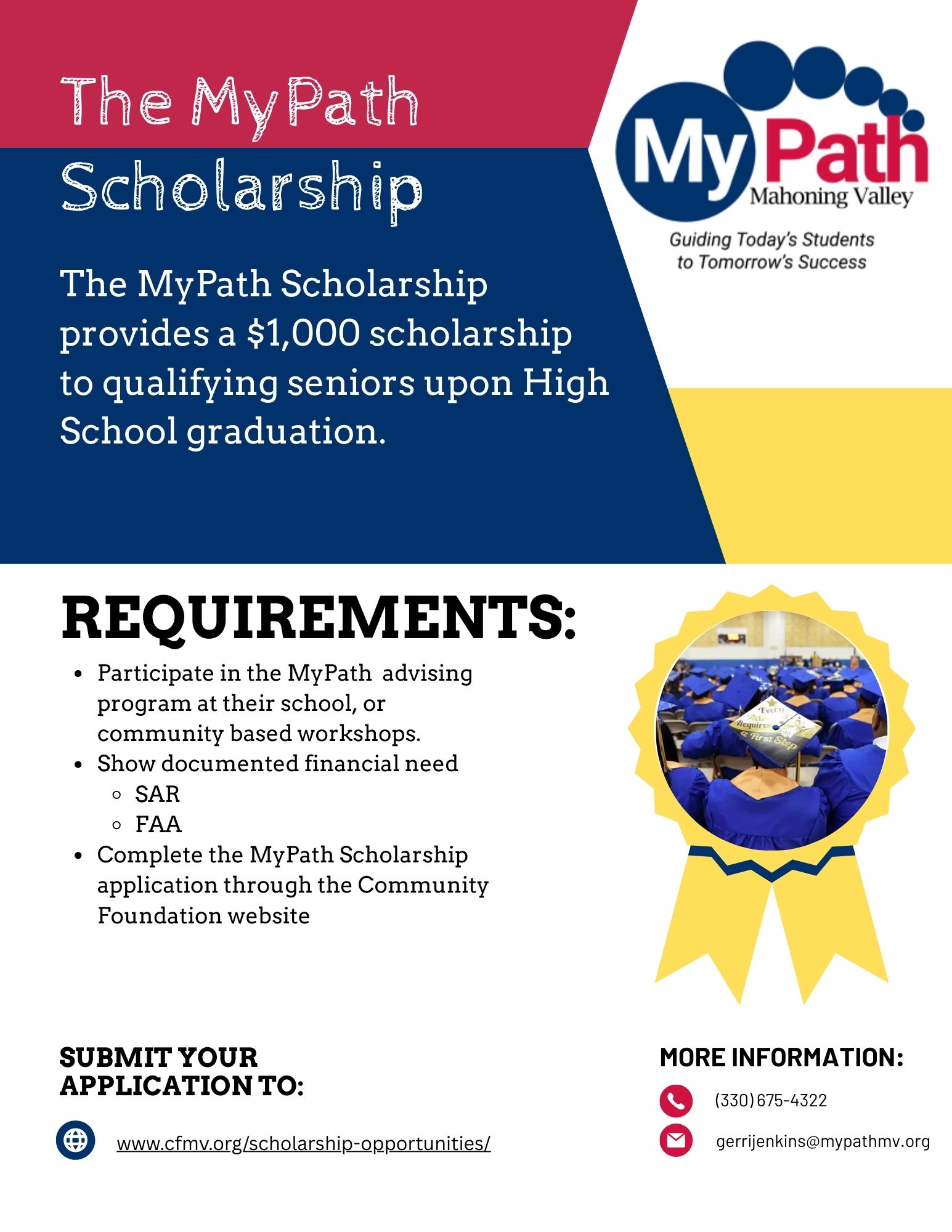 If you are a student that has participated in our MyPath advising program, or our community based workshops you're one step closer to applying for our personal scholarship.